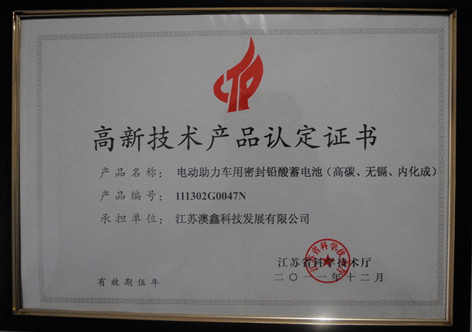 高新技術產品認定證書
