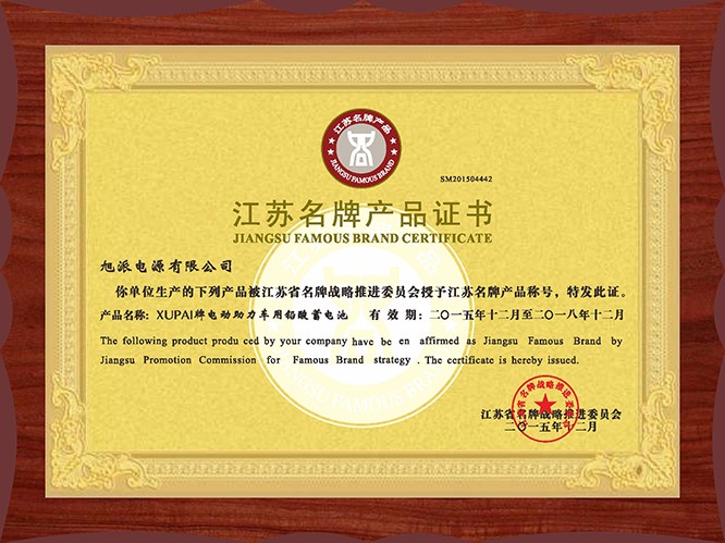 江蘇名牌產品證書