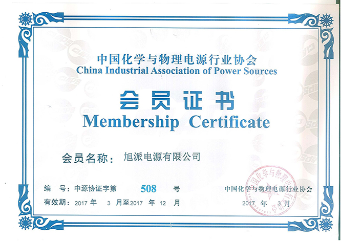中國化學與物理電源行業(yè)協會會員證書